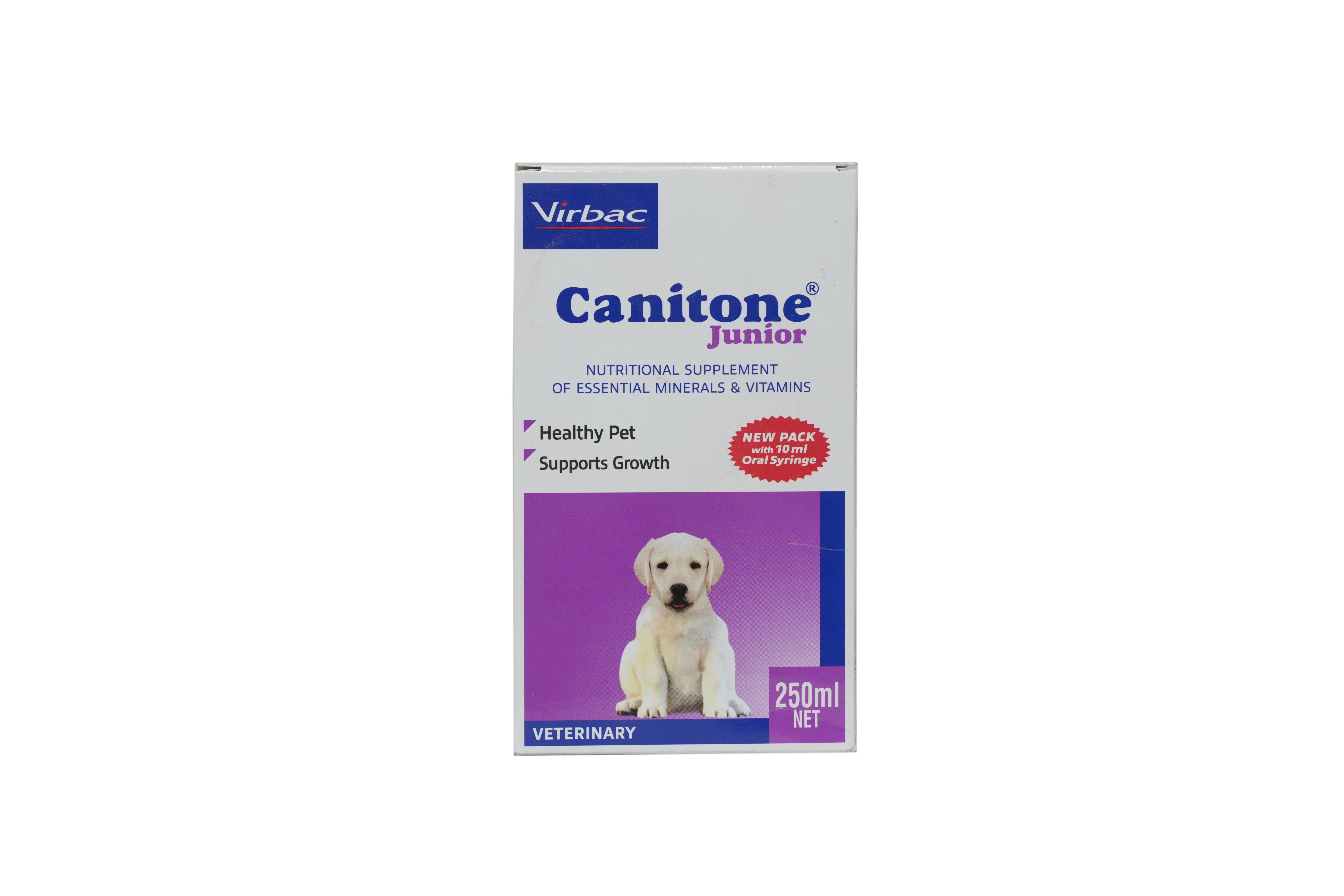 Virbac Canitone Supplement for Dogs & Cats - Growth & Immunity (250ml) contains a blend of pivotal vitamins and minerals ideal for young ones during the crucial growth and development phase. Amongst the nutrients present, iodine is a vital mineral present that supports the functioning of the thyroid gland, which is responsible for aiding growth and metabolism. Virbac Canitone Supplement for Dogs & Cats - Growth & Immunity (250ml) is a liquid supplement that comes in a palatable strawberry flavor. Composition: Each 5ml contains: Calcium 150mg Phosphorus 75 mg Vitamin D3 400 IU Vitamin B12 5 mcg Sodium 4.2 mg Magnesium 5 mg Iron 2.5 mg Iodine 50 mcg Vitamin B5 2 mg Vitamin B6 0.22 mg Class: Multivitamin Indications/Uses To support normal growth & development; To improve the immune response and reduce susceptibility to diseases. Directions for use: Small breeds: 5ml daily Large breeds: 10ml daily Disclaimer The information provided on AVETMART is for informational purposes only and is not intended as a substitute for professional veterinary advice, diagnosis, or treatment. Always consult a qualified veterinarian for any pet health concerns.